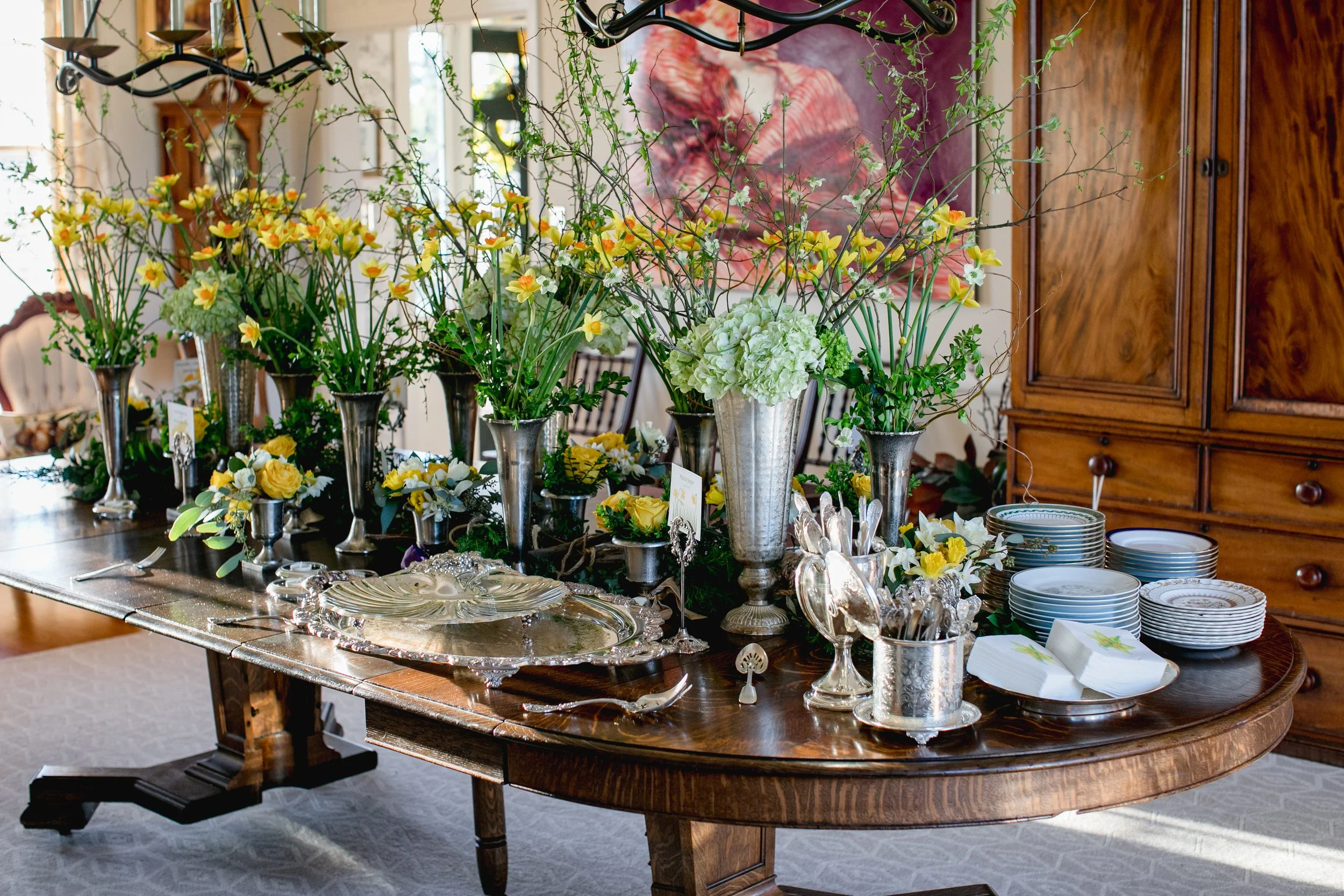 A family home, filled with daffodils to celebrate the bride and groom in March.